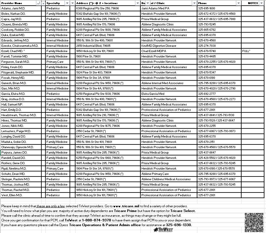 | EFMP Medical | Angela Robinson 325-696-8146 |