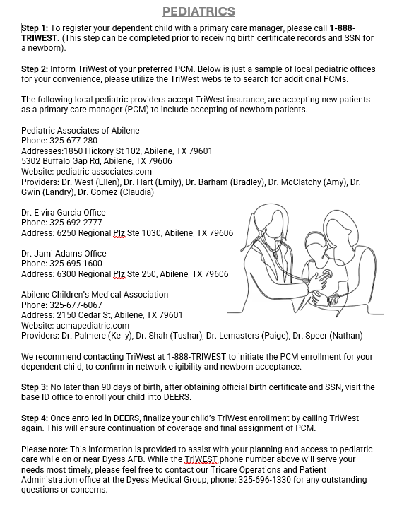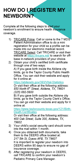| PCS Childcare Vouchers- 20 hours before PCS and 20 hours after PCS- per child | Call Military Family Readiness Center at 325-696-5999 |